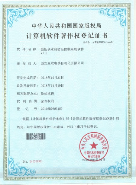 您現(xiàn)在的位置:亞歐官網(wǎng) - 關(guān)于我們 - 資質(zhì)榮譽(yù) - 恒壓供水啟動(dòng)柜控制系統(tǒng)軟件